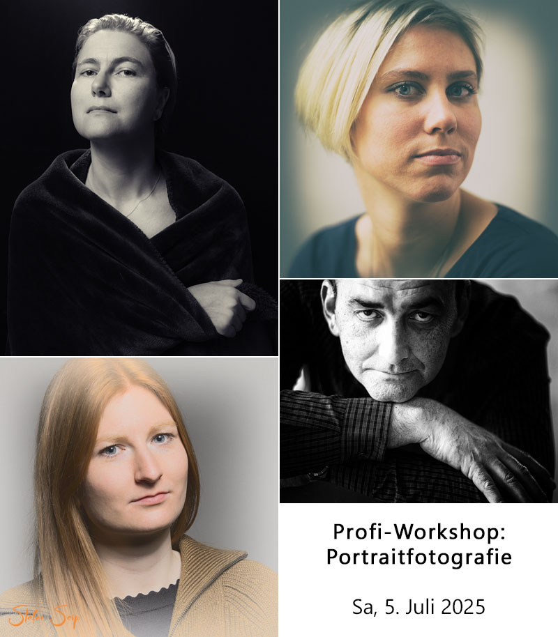 Portraitfotografie 23. Mai 2025 • 20.31 Uhr Portraitfotografie im Studio Termin: Sa, 5. Juli 2025 Gruppengröße: Minimal zwei, maximal vier Teilnehmende ![]() Themen: Theorie, Licht und Lichtführung, Kommunikation mit dem Model, Posen, Hintergrund, Accessoires, Bildgestaltung, High-Key, Low-Key, Bildbearbeitung, Bildbesprechung u.v.m. Voraussetzungen: Eine Digitalkamera (Fotohandy reicht nicht), Laptop mit Bildbearbeitungsprogramm, etwas Erfahrung im Umgang mit beidem. Kaum ein Bereich der Fotografie fasziniert so sehr wie die Darstellung des Menschen. Ein gekonntes Portraitfoto zieht magisch alle Blicke auf sich und lässt den Betrachter nicht mehr los. Tagtäglich können wir erleben, wie die Werbung von dieser Wirkung Gebrauch macht. Noch intensiver sind die Emotionen, wenn bekannte oder vertraute Personen abgebildet sind. Solche Portraitfotos schaut man sogar noch nach vielen Jahren gerne an. Doch die Portraitfotografie hat ihre Tücken: Nicht selten sind die Portraitierten unglücklich über die Ergebnisse und viele Menschen agieren vor der Kamera befangen. Das bedeutet, dass neben der Fototechnik auch das Arbeiten mit dem Modell eine große Rolle spielt. Beide Aspekte werden im Workshop behandelt. Zudem wird eine kompakte, solide Einführung in die Bildbearbeitung im Bereich der Portrait-Retusche geboten. Der Workshop findet in einem professionellen Fotostudio statt, wo alle erdenklichen Lichtsituationen hergestellt werden können. Eine kurze Einführung in die Studiotechnik ist daher enthalten. Models stehen zur Verfügung! Die Erkenntnisse aus dem Workshop lassen sich mühelos auf Aufnahmesituationen außerhalb eines Fotostudios übertragen. Wer einmal gelernt hat, mit Licht umzugehen, findet die gewünschten Bedingungen oft auch in Wohnräumen oder im Freien. Ablauf: Nach dem Kennenlernen vermittelt eine kurze Theorieeinheit, worauf es ankommt. Danach heißt es »Learning by Doing«. Unter Anleitung, versteht sich. Zuvor besprochene Beleuchtungssituationen werden durchgespielt, angefangen vom klassischem Portraitlicht für Farbe und Schwarzweiß, über progressive Ausdrucksformen bis hin zu reduzierten, stilisierenden Darstellungen. Danach werden wir, wiederum angeleitet, wichtige Stationen der Bildbearbeitung von Portraits kennenlernen. Eine Bildbesprechung rundet die Veranstaltung ab. Gerne integriere ich Deine Ideen in die Agenda. |